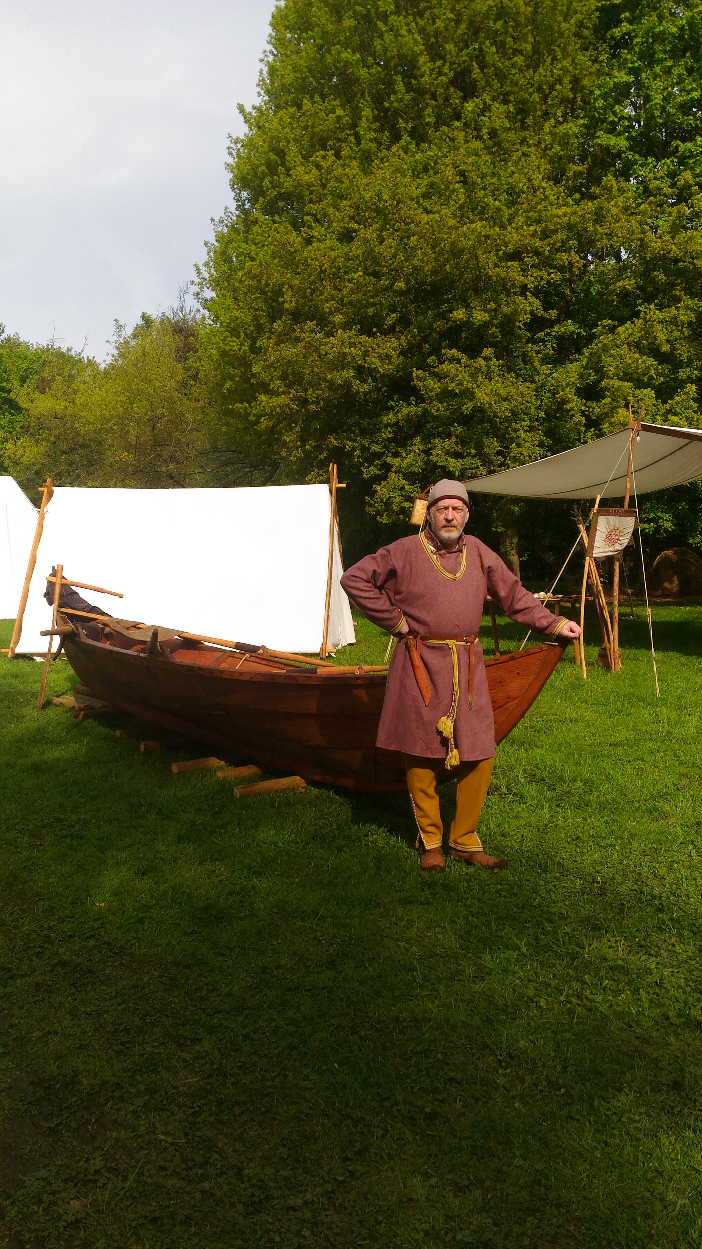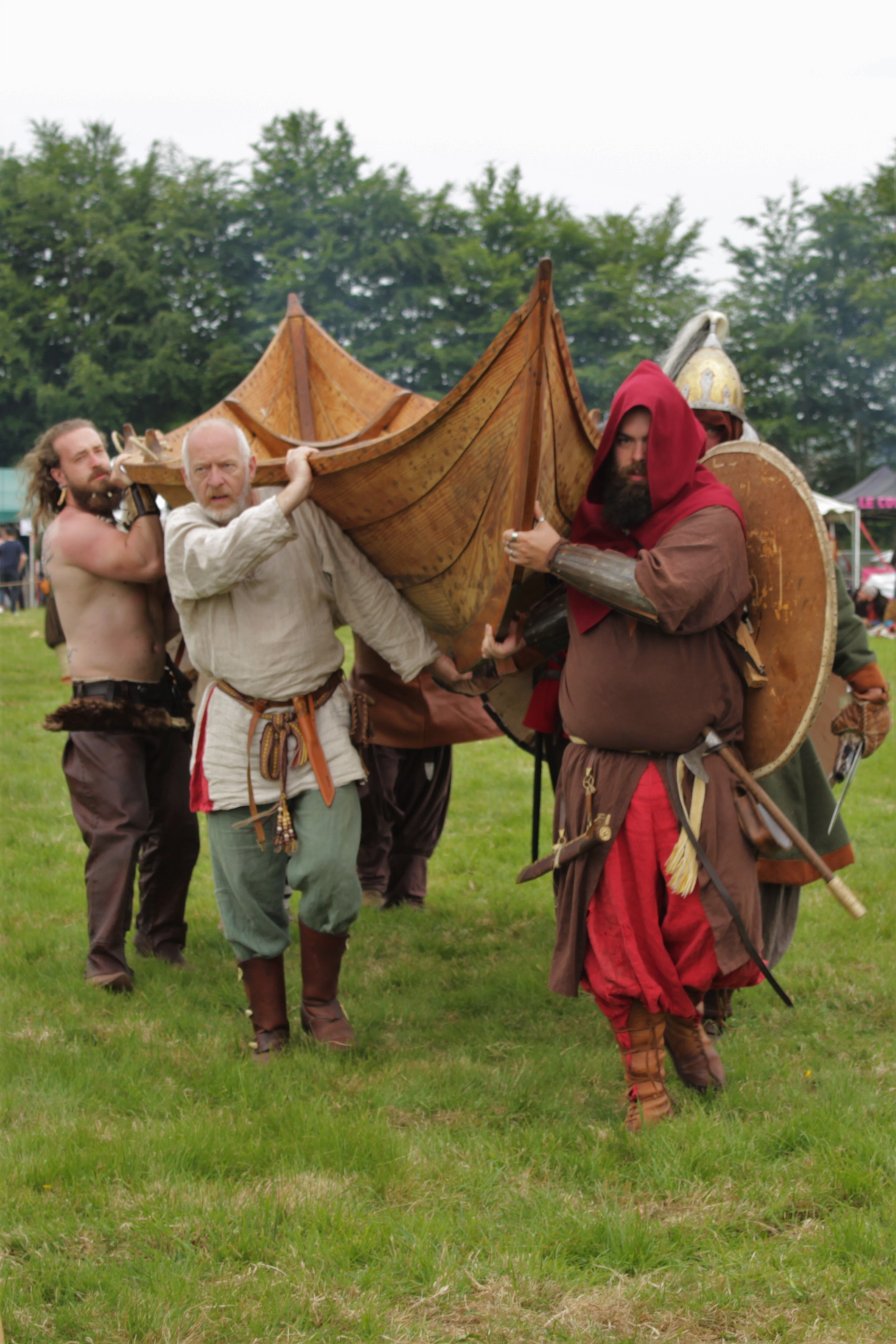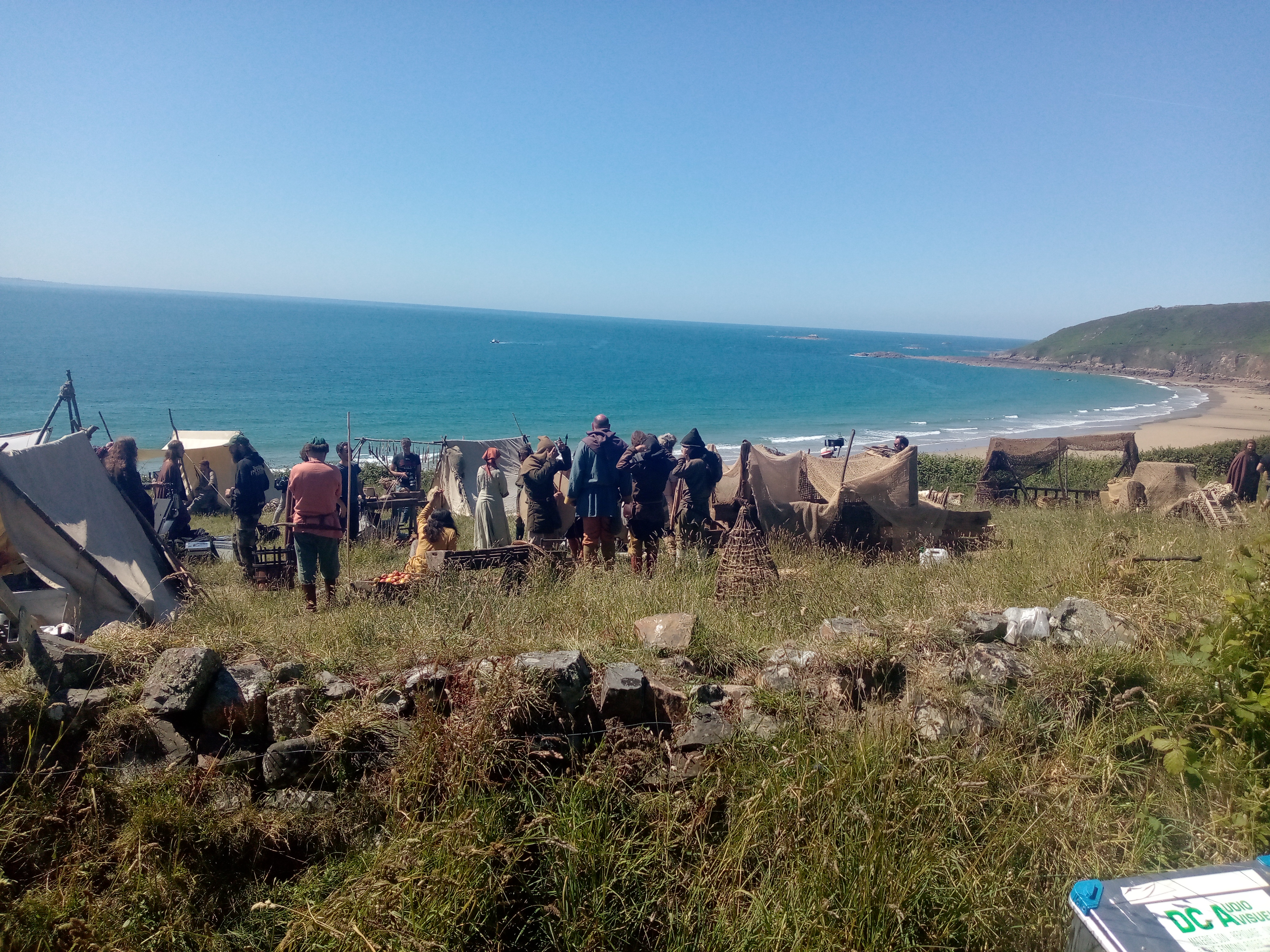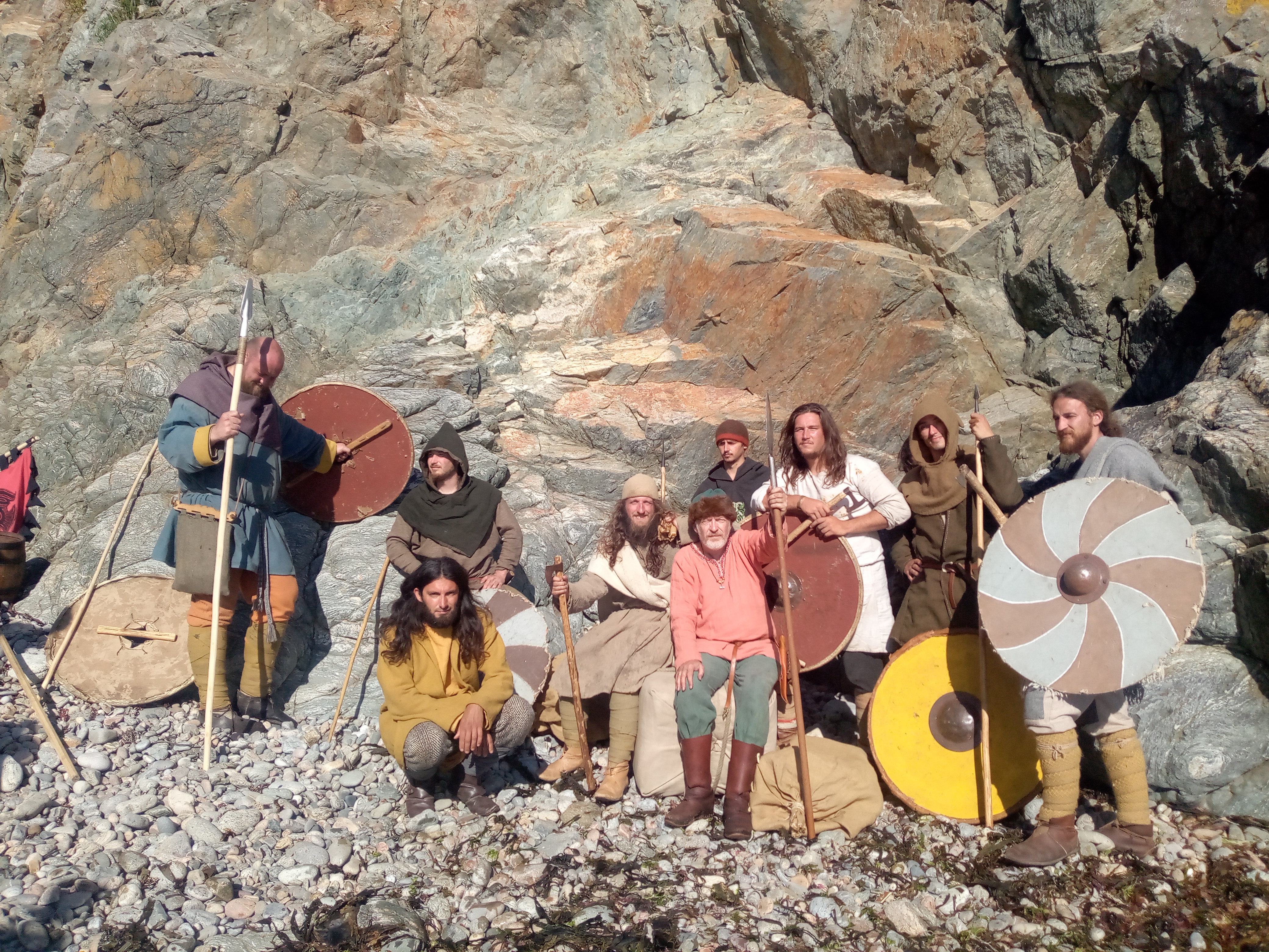 Après avoir retraversé la plage et gravi sans faillir la muraille de galets qui fait office de haut de plage avec le bateau sur le dos, nous avons pris une pause déjeuner bien méritée en début d'après-midi, c'est en costume que nous avons continué l'aventure en tant que figurants jusque vers 20h30, heure à laquelle nous avons échangé un dernier salut avec nos nouveaux amis du Clan du Vestfold avant de retourner ranger le bateau.