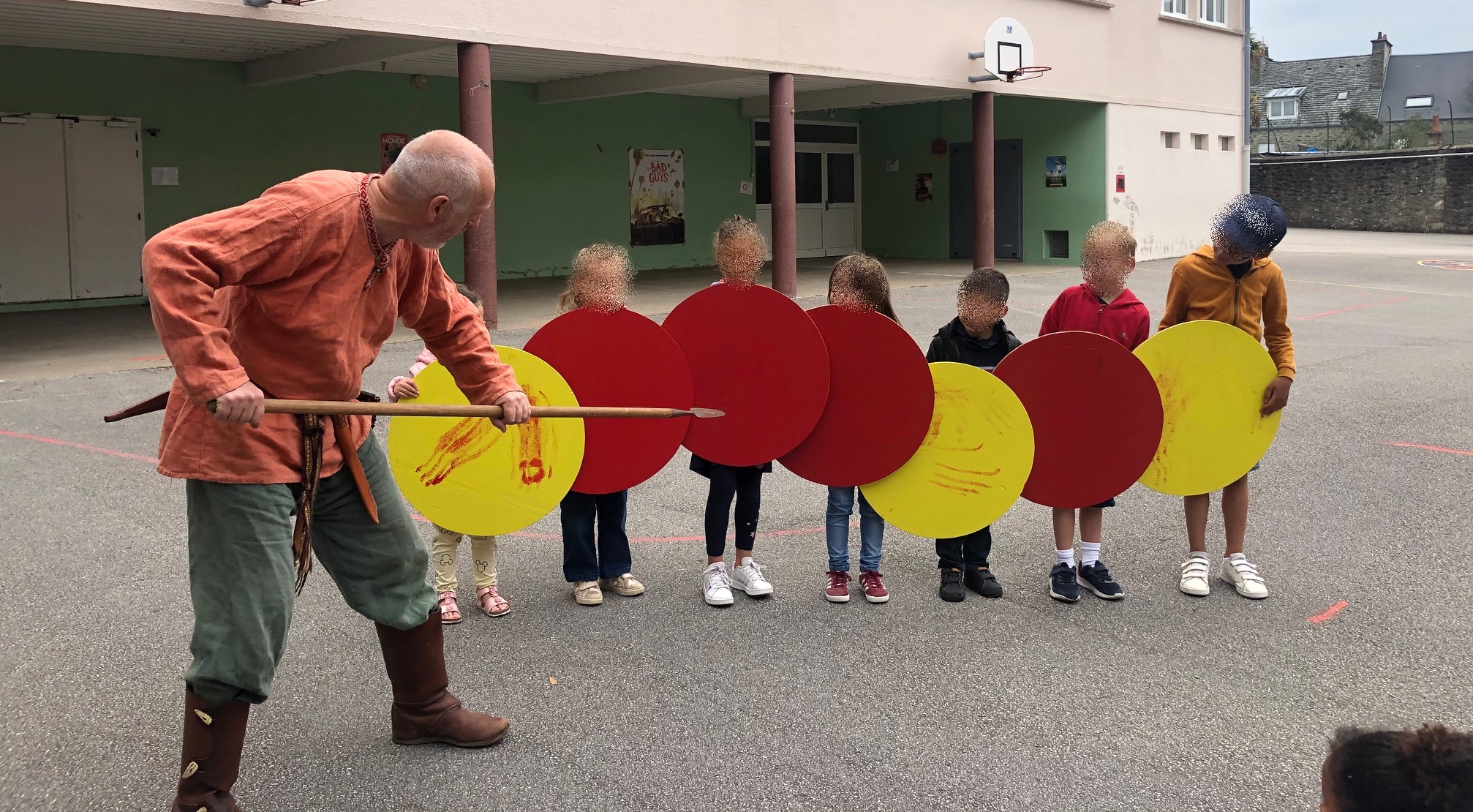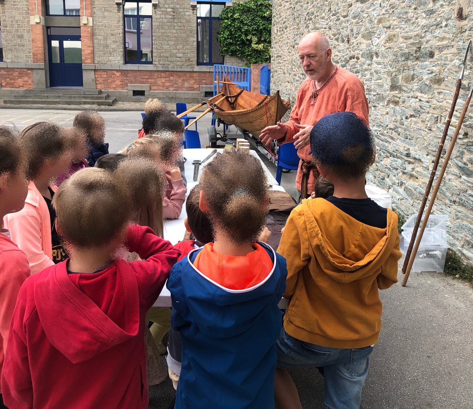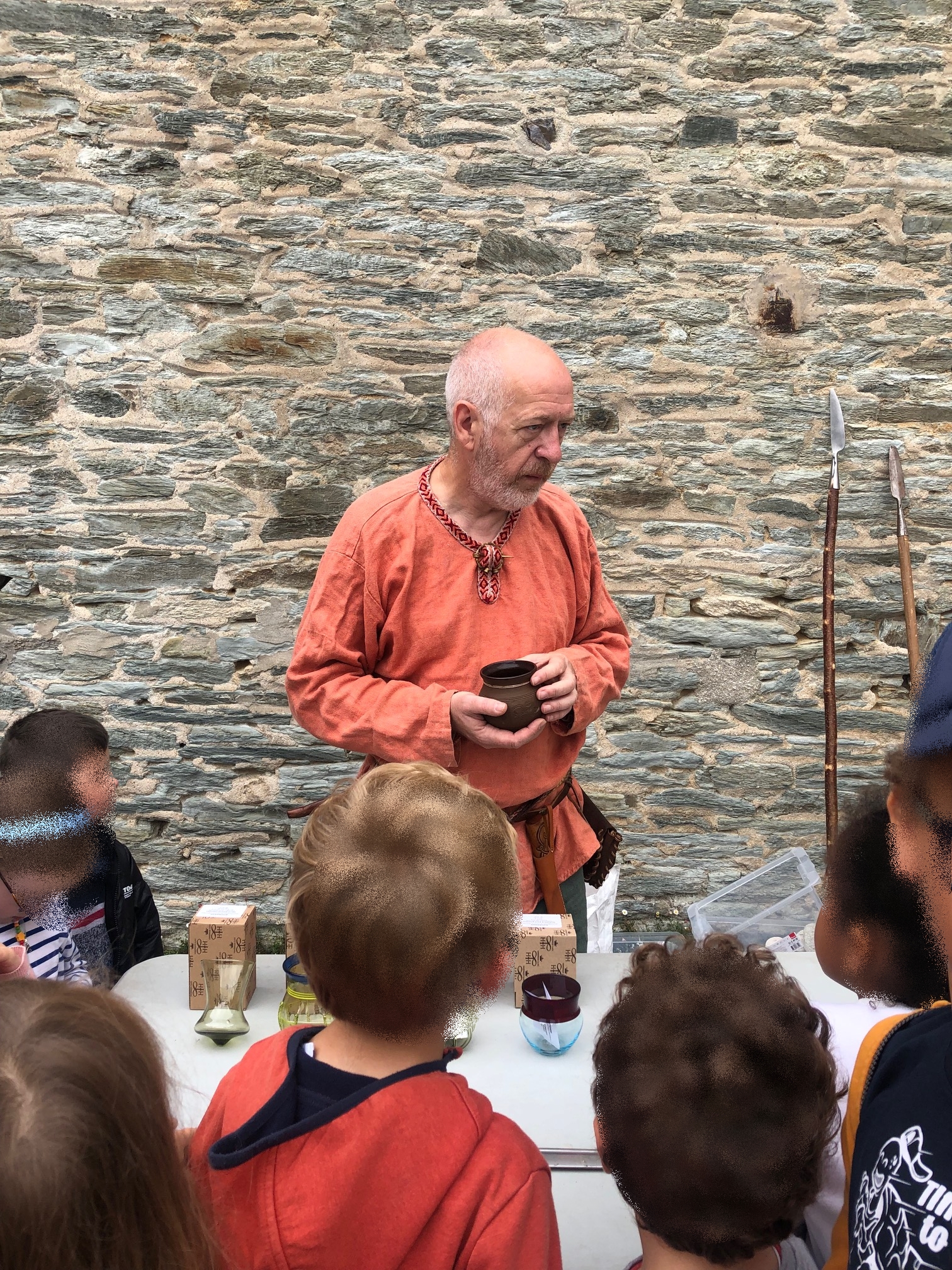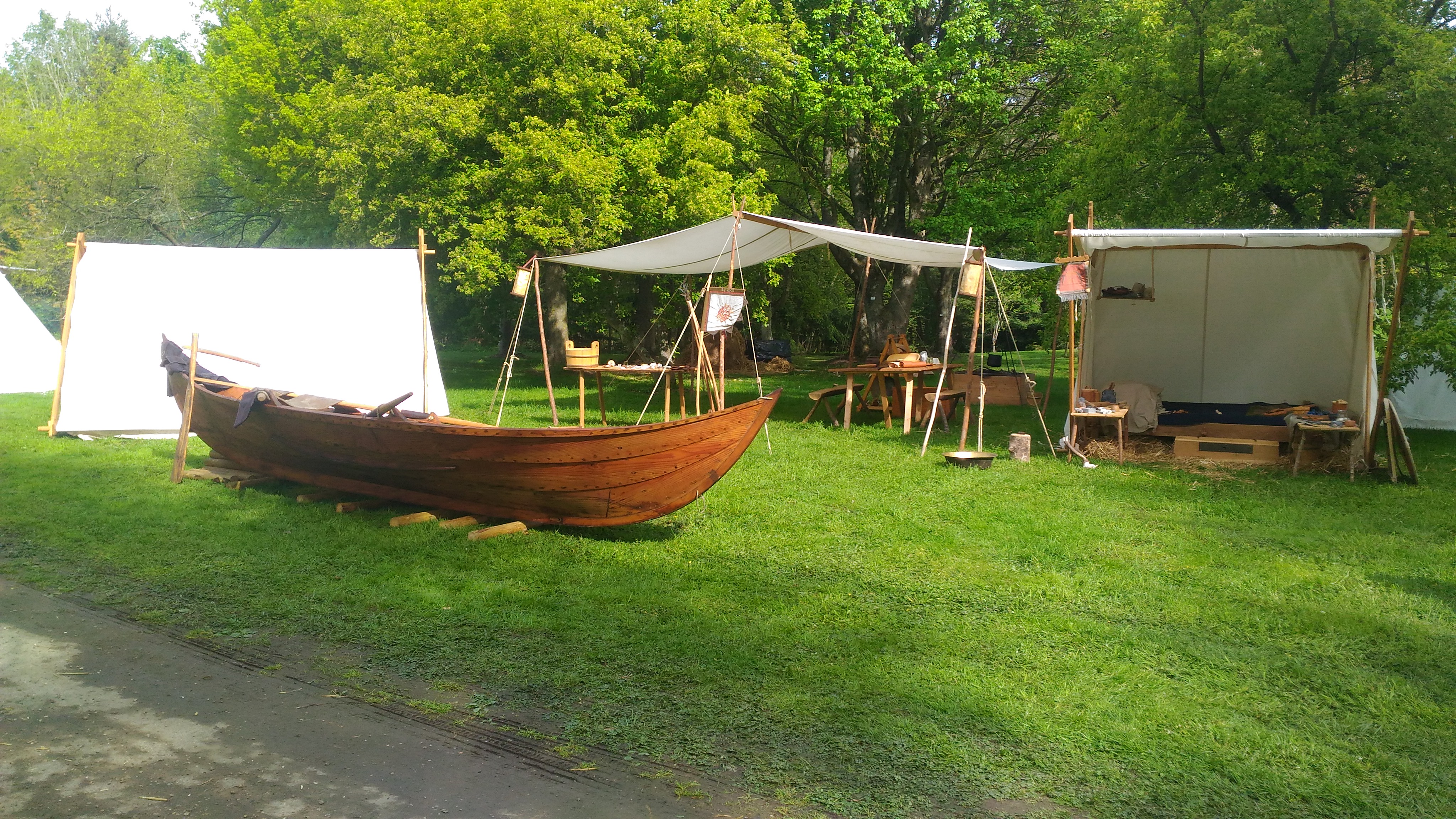 Après avoir retraversé la plage et gravi sans faillir la muraille de galets qui fait office de haut de plage avec le bateau sur le dos, nous avons pris une pause déjeuner bien méritée en début d'après-midi, c'est en costume que nous avons continué l'aventure en tant que figurants jusque vers 20h30, heure à laquelle nous avons échangé un dernier salut avec nos nouveaux amis du Clan du Vestfold avant de retourner ranger le bateau.