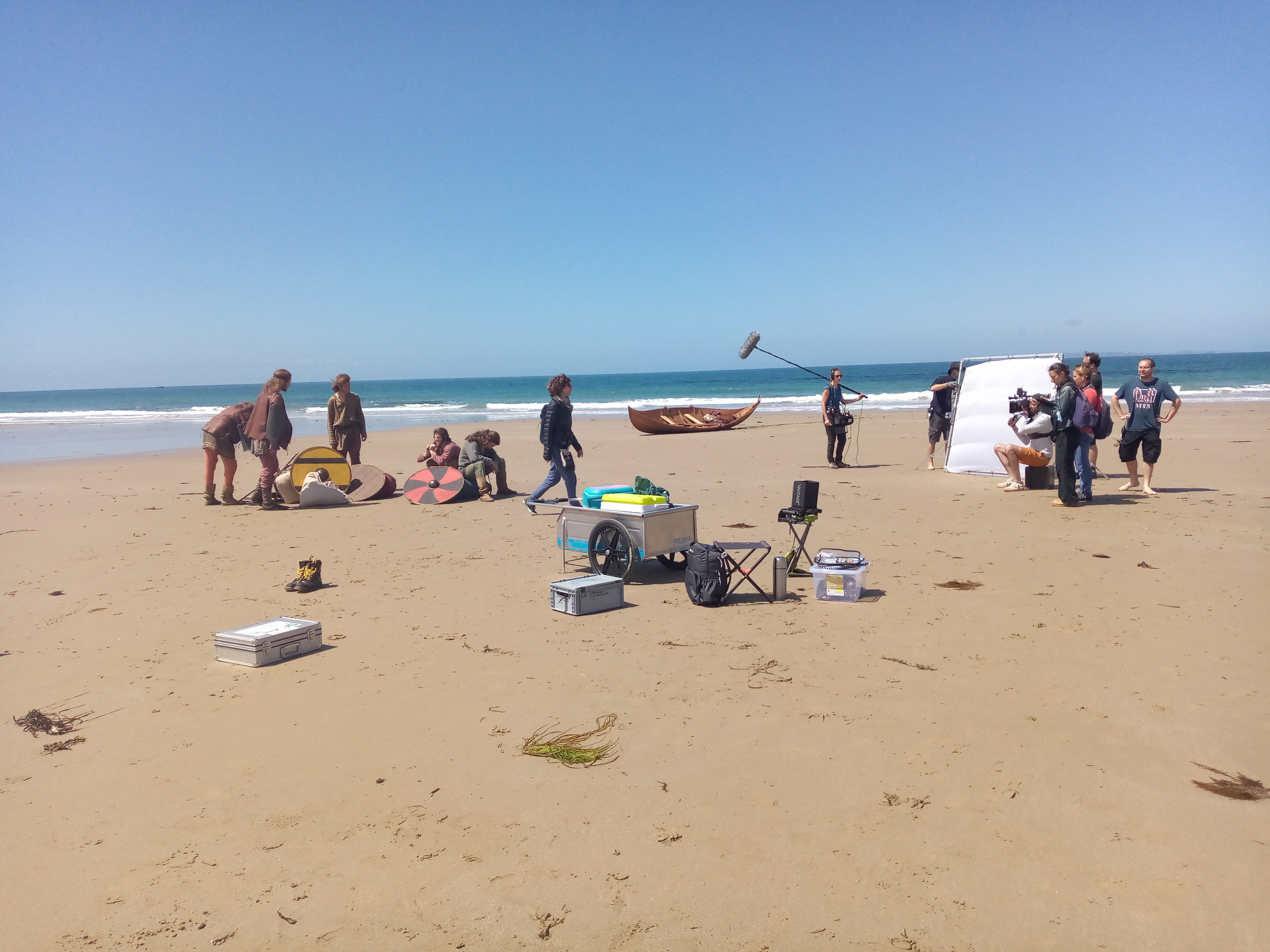 Au programme du gros muscle avec le portage du bateau à dos d'homme depuis le parking jusqu'au sud de la baie en passant par le haut de la plage (marée oblige) en marchant dans les gros galets, puis (la marée étant descendue) descente et traversée des champs de chistes noirs pour une longue séance de prises de vues avec les acteurs principaux de la série.